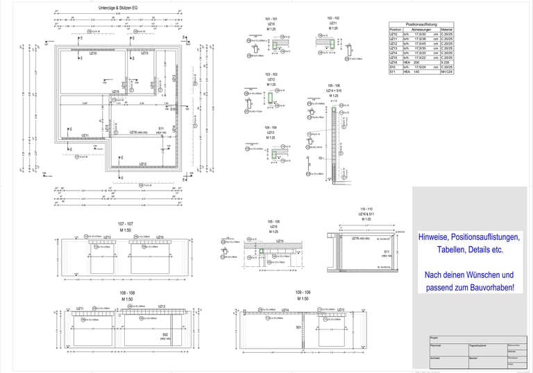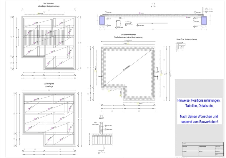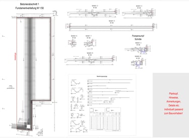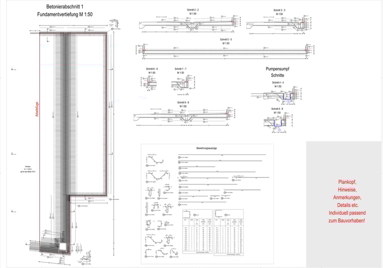 BA1 Fundamentvertiefung, Aufkantung, Pumpensumpf + Schnitte