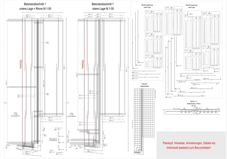 BA1 ober + untere Lage, Rinnenbewehrung + Abstandhalter